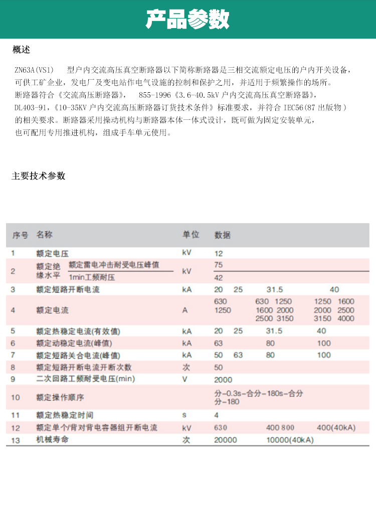 3.ZN63A-12(VS1)真空断路器机器特点参数